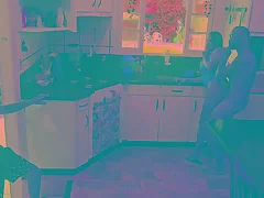 Dei para os amigos do meu marido na cozinha enquanto ele limpava a piscina. Parte 2